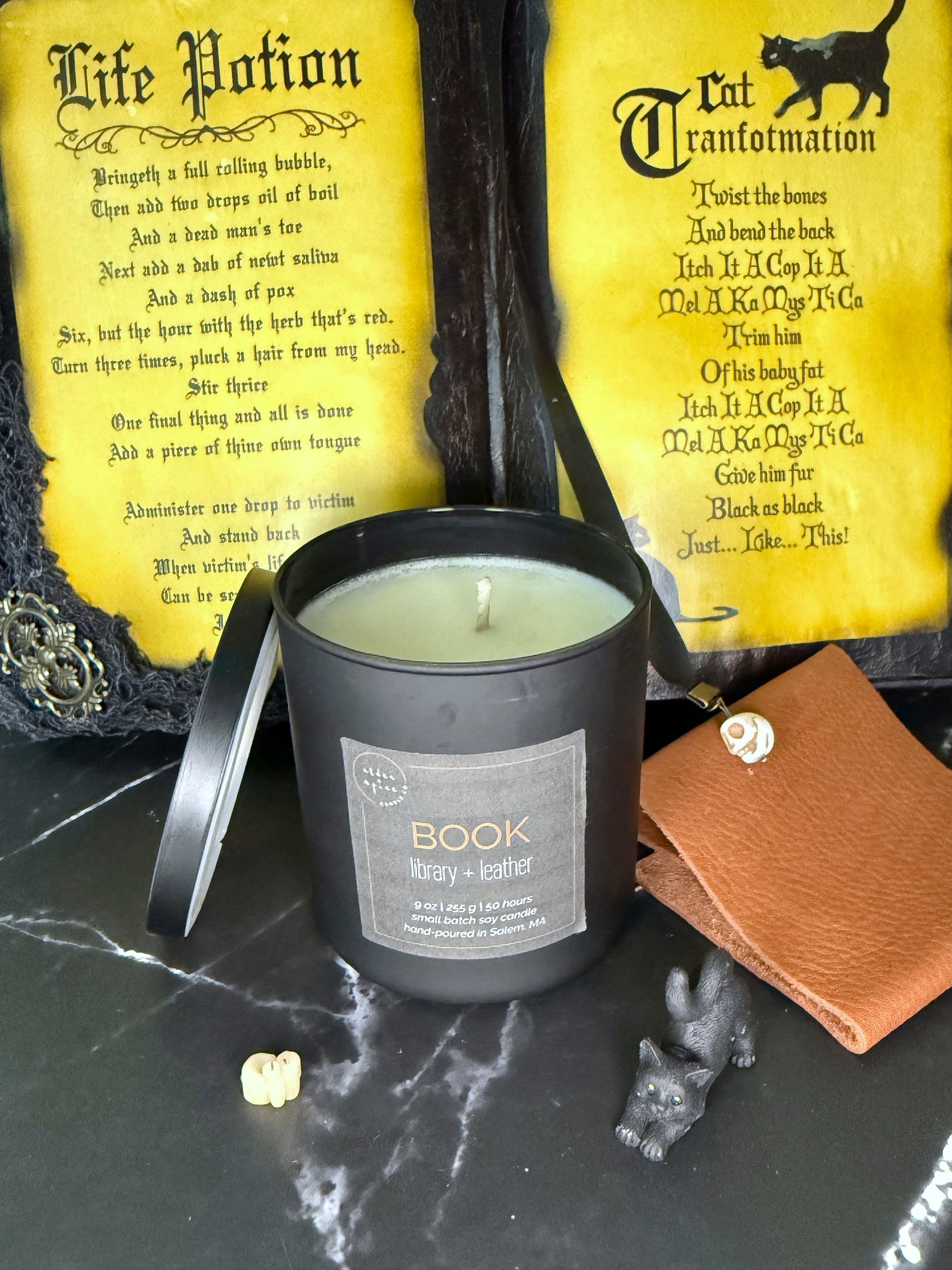 Unleash your inner mystic with Book. Infused with leather, incense, and whiskey, this candle is sure to bring a whole new level of energy and enlightenment to your burning experience.