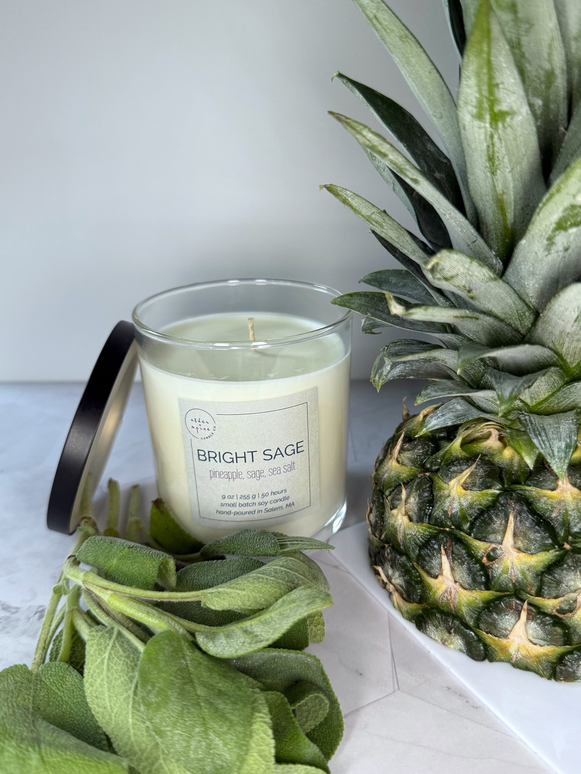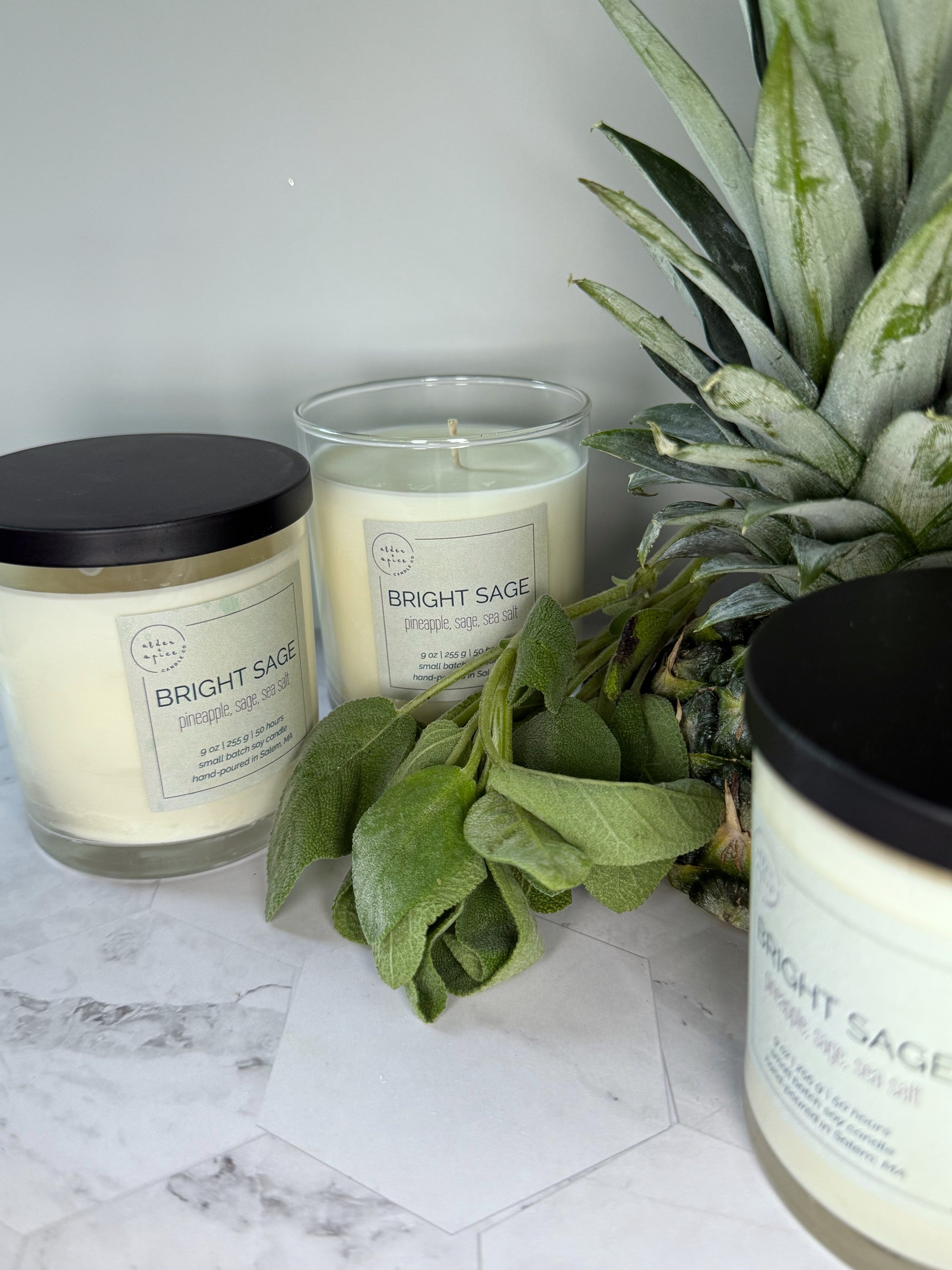 Revitalize your senses with Bright Sage, infused with the refreshing scents of pineapple, sage, sea salt, orchid, and a touch of invigorating ozone. Perfect for when you need a little pick-me-up!