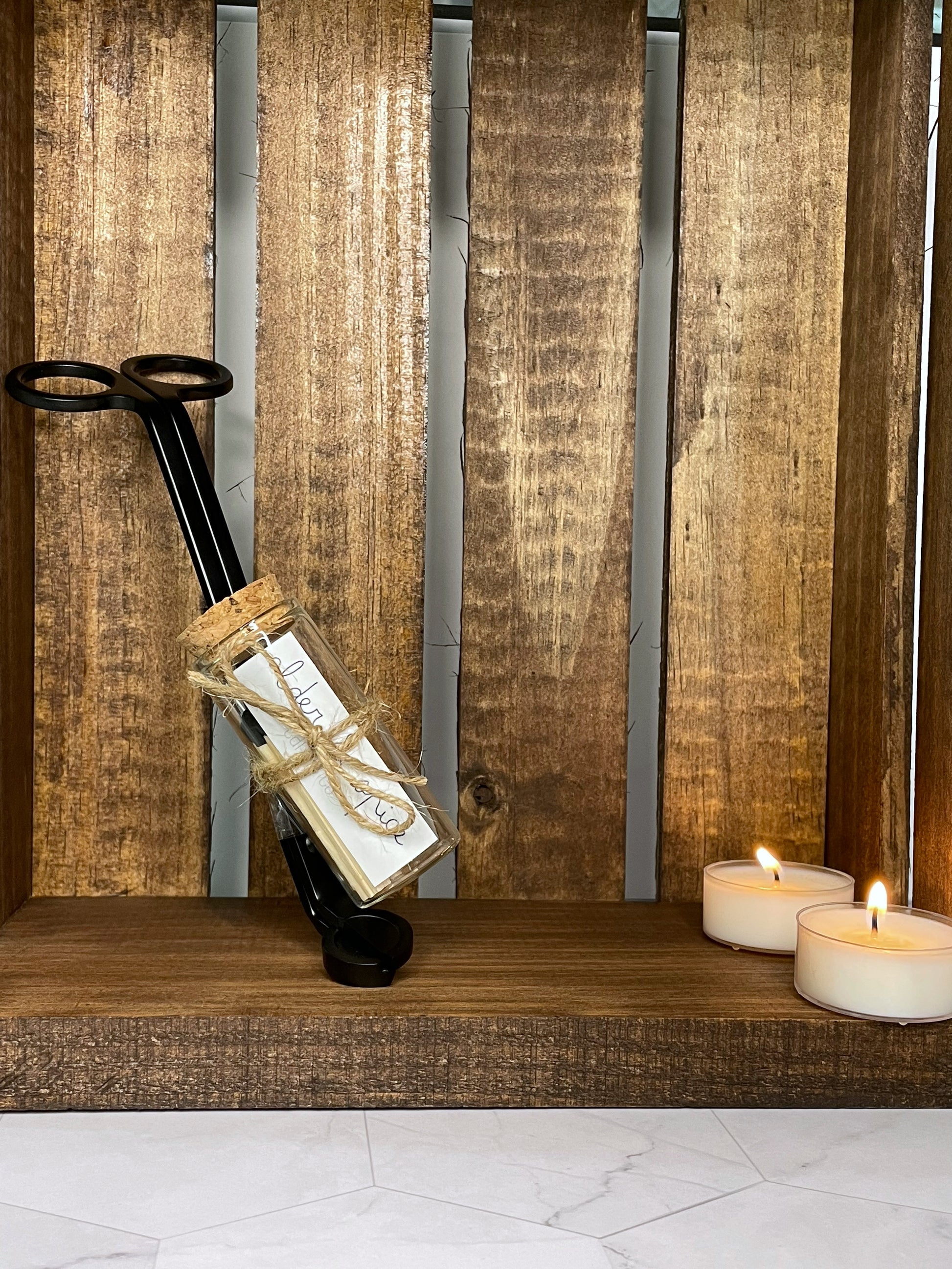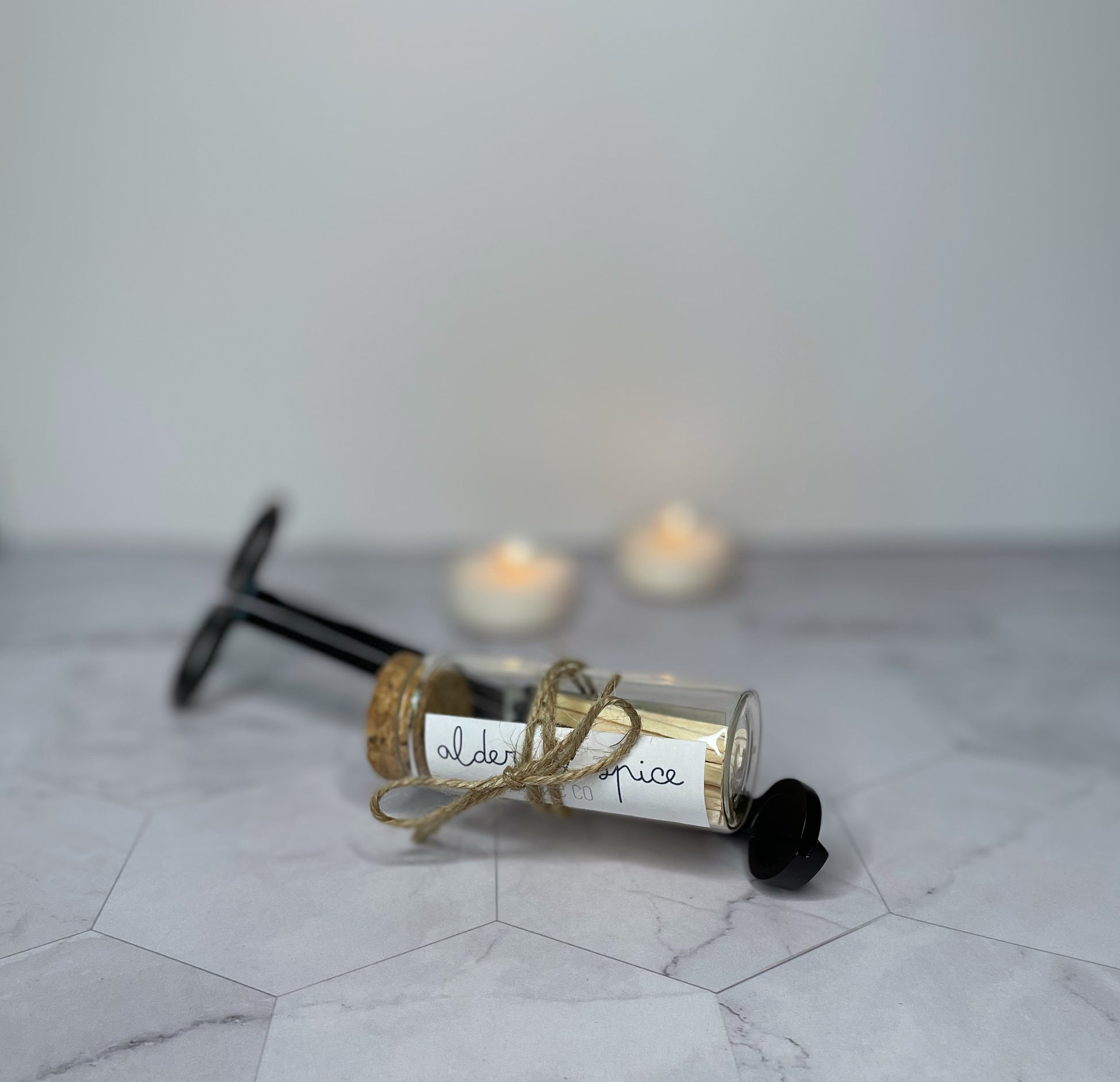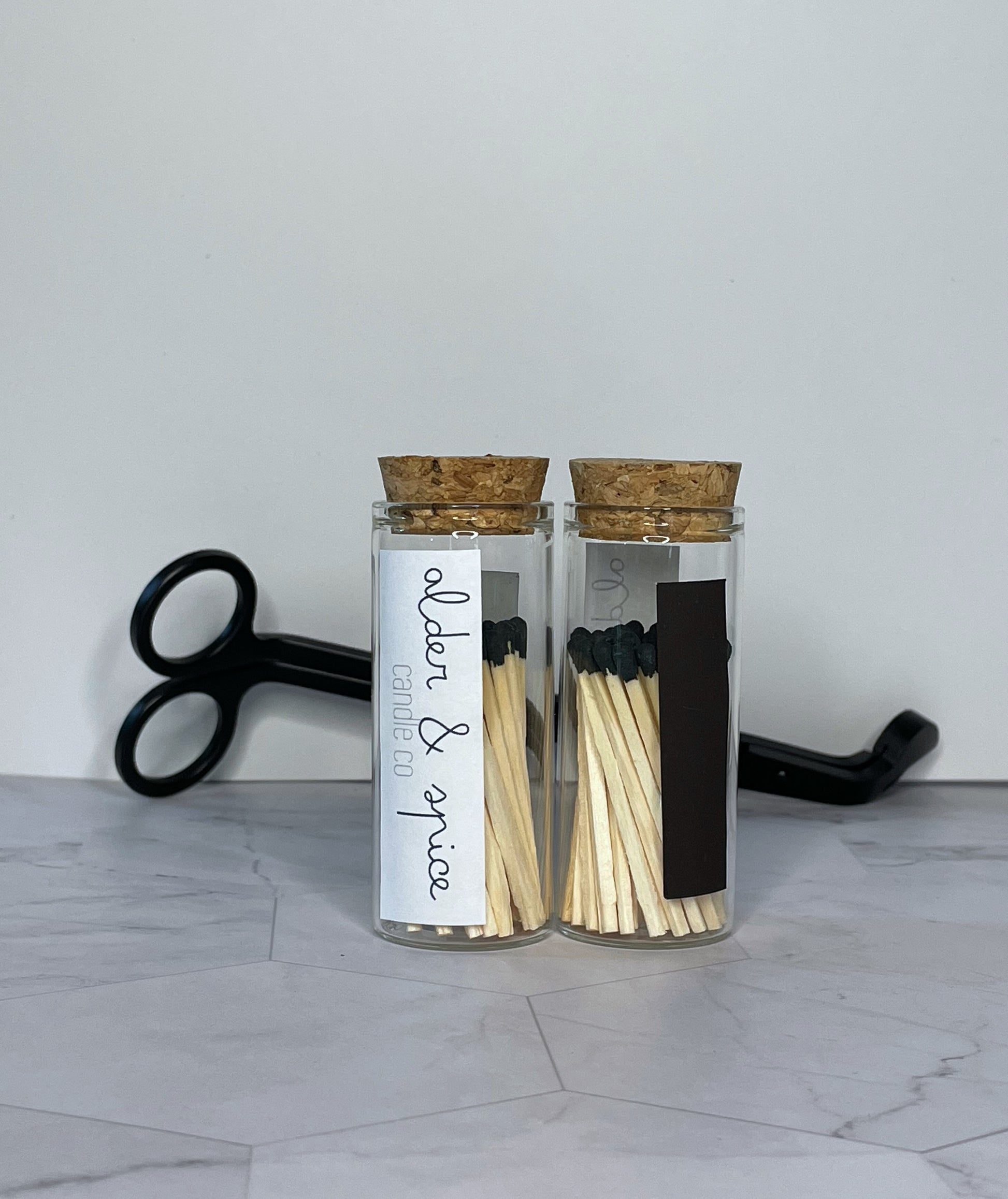 Keep your candles in tip-top shape with our candle accessory kit! Featuring a matte-black wick trimmer and 35 black-tip matches in a custom mini apothecary jar with a striker on the back, this kit adds a touch of Salem style to your candle care routine.