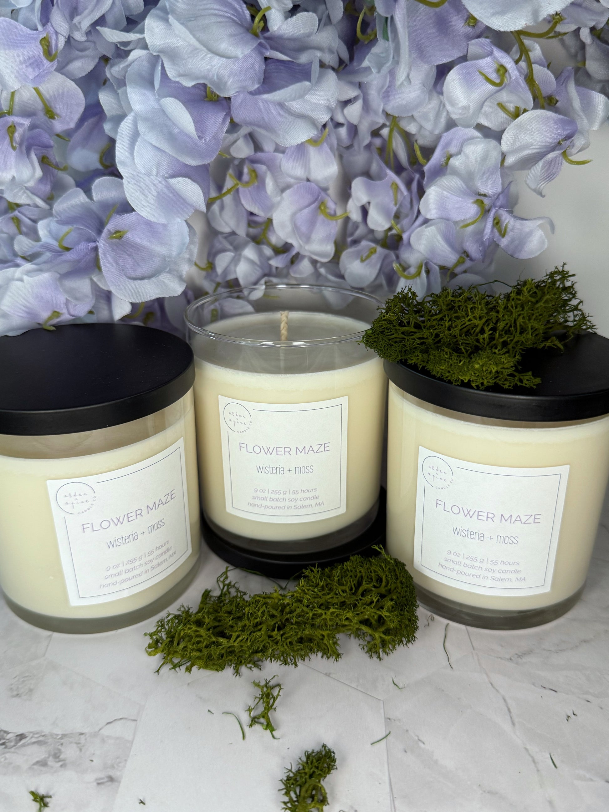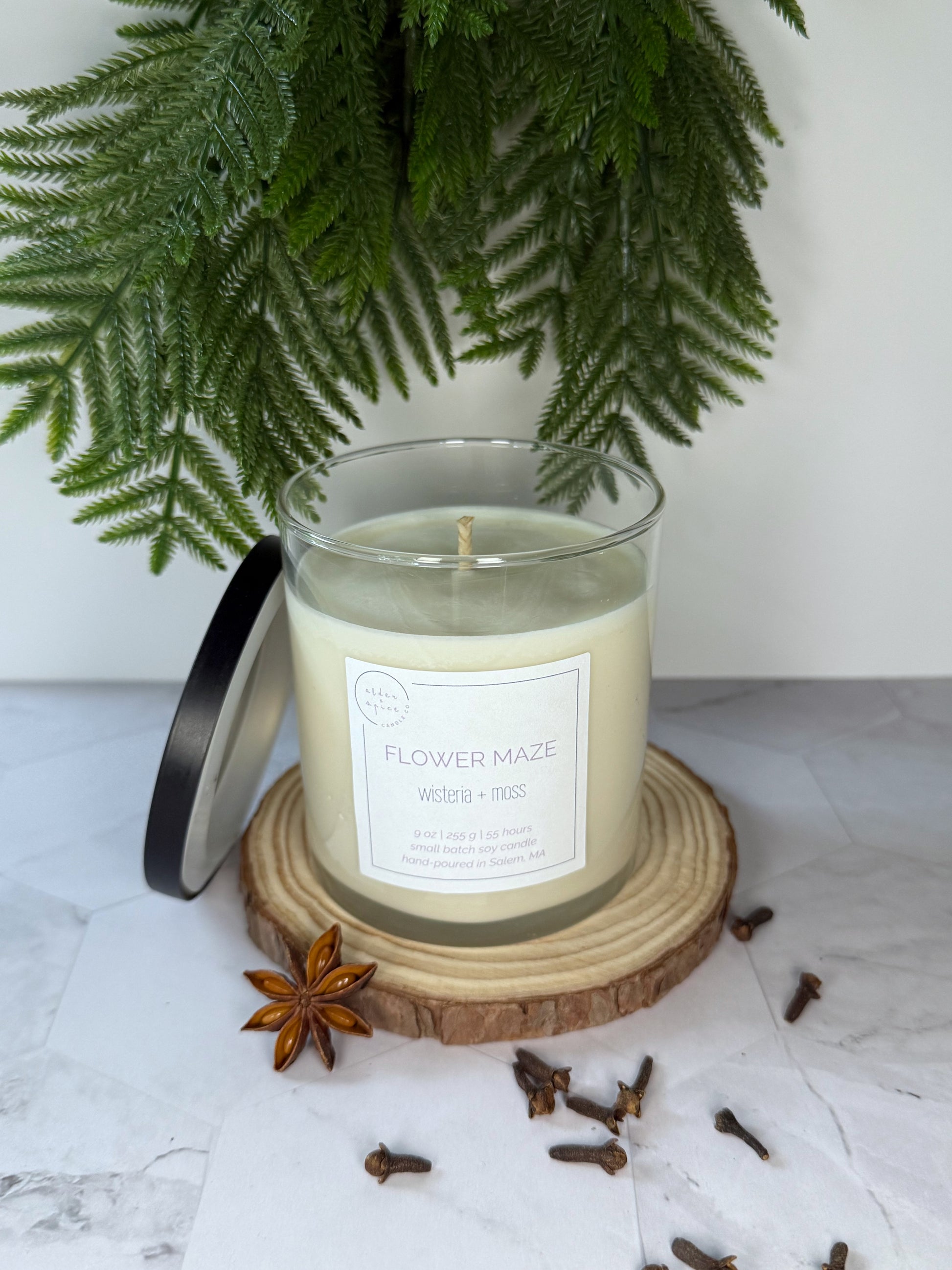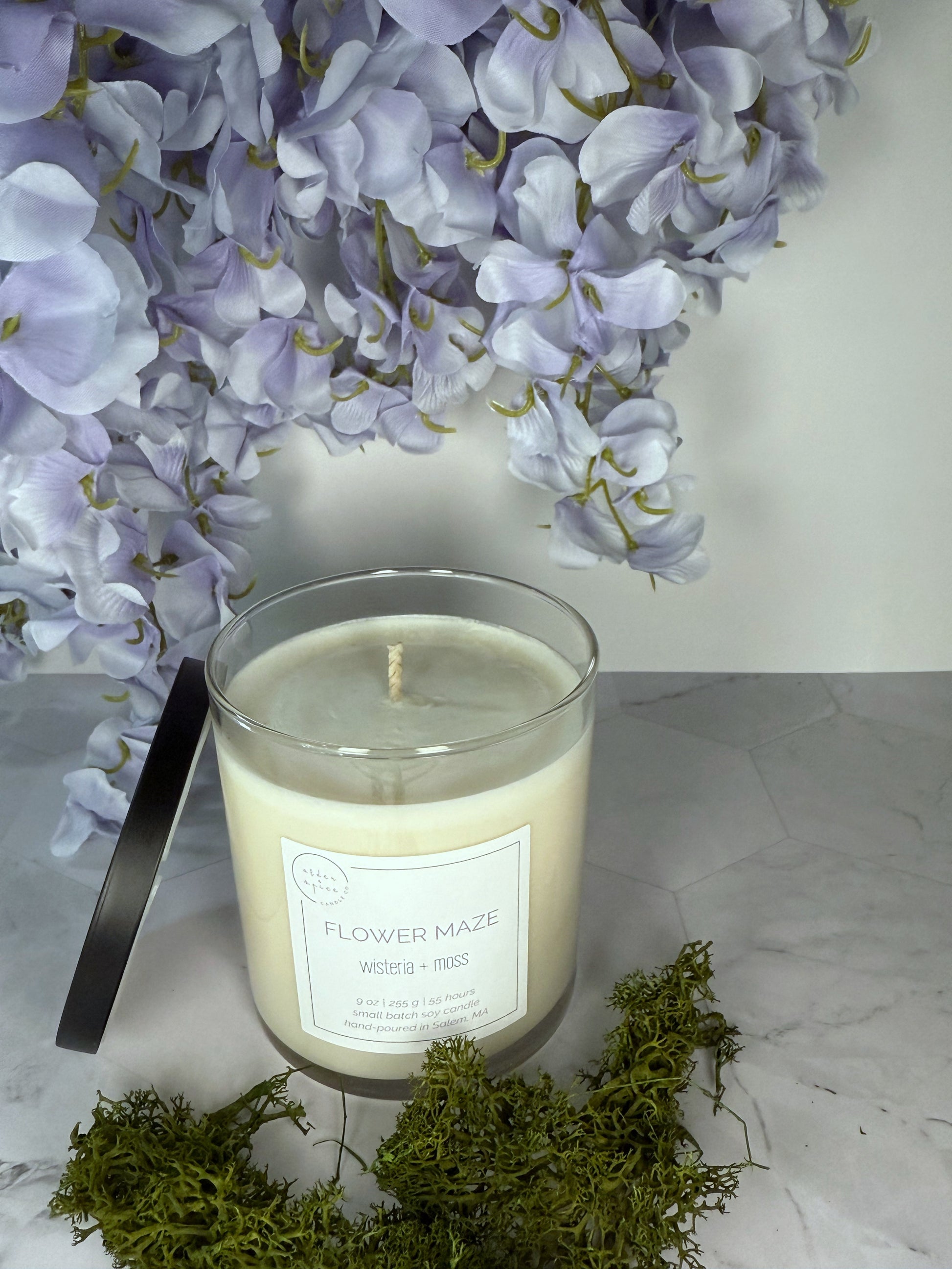 Take a whimsical springtime stroll through blooming wisteria and lilac, with a fresh hint of mossy earth beneath your feet with Flower Maze. This scent captures the magic of a secret garden, filling your space with floral sweetness and grounding green notes that brighten any day.