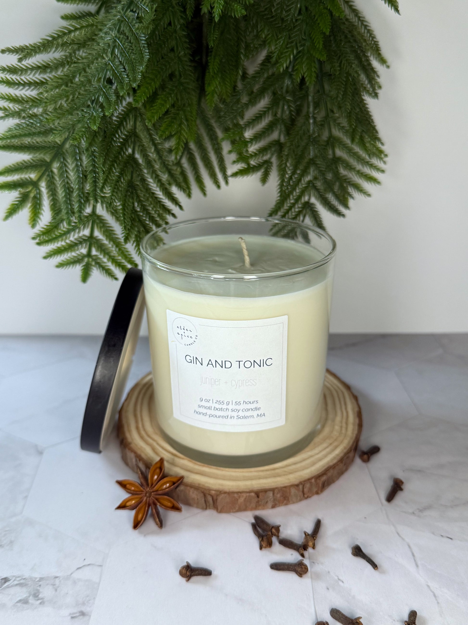 Bring the lively spirit of a British pub to your home with our Gin and Tonic candle. Infused with subtle notes of juniper and cypress, it captures the crisp, refreshing essence of this classic cocktail. Perfect for those who love a cheeky nod to tradition with a fresh, modern, botanical vibe.