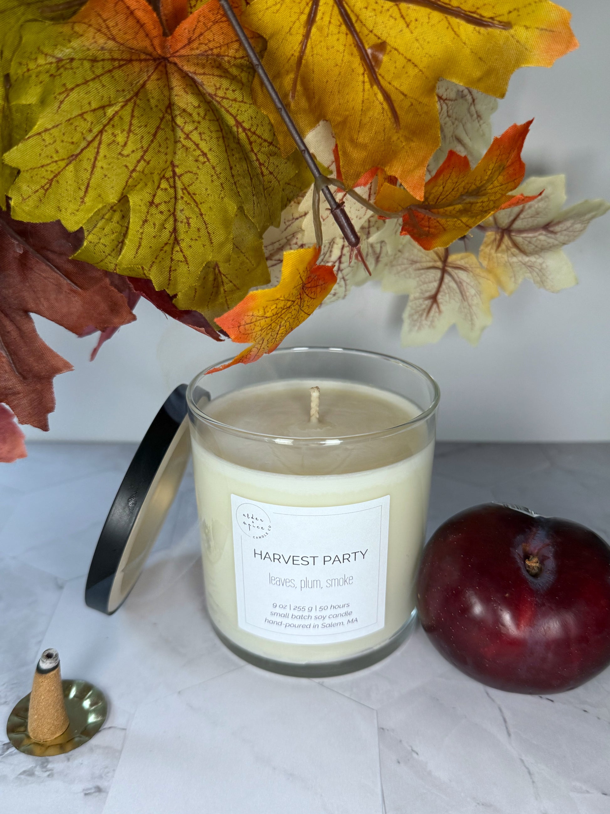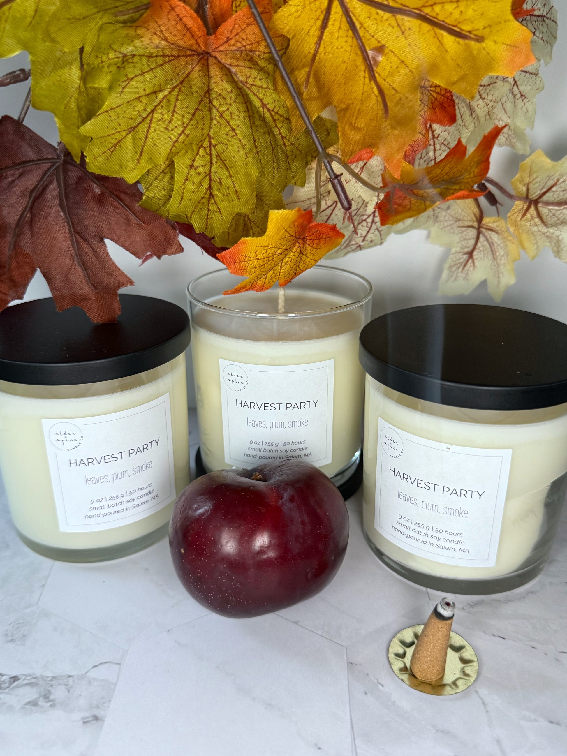Set your autumn fête aglow with Harvest Party The aroma of fresh green leaves, and the sweet scents of plum and smoke will set the perfect ambiance. Let the festivities begin!