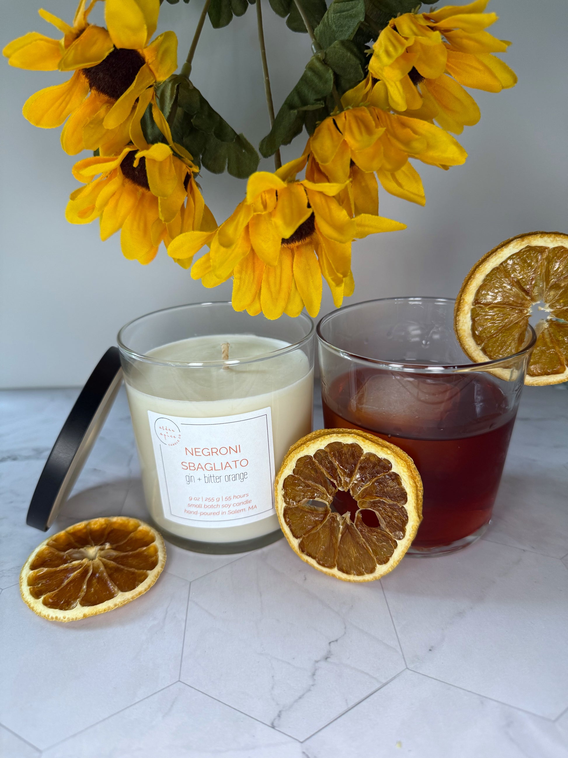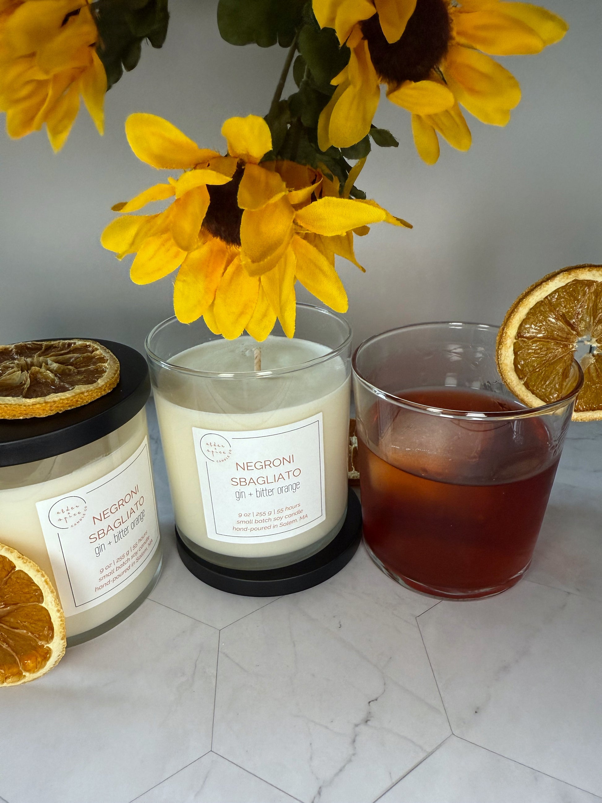 Experience the sparkling scent of a Negroni Sbagliato in candle form! This playful blend includes notes of gin, bitter orange, and prosecco. Perfect for brightening your mood and adding a splash of fun to any room.