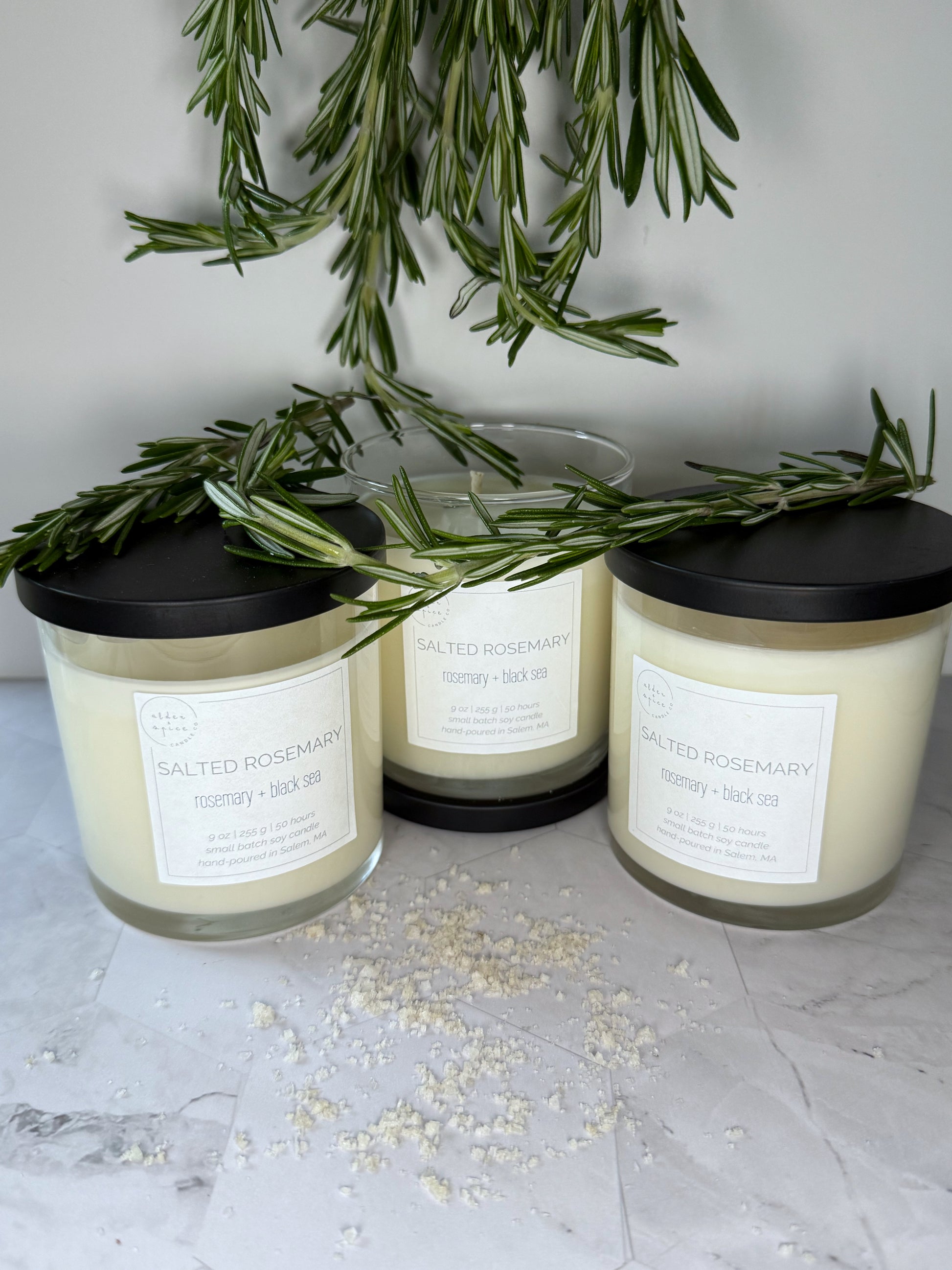 Light up your space with a touch of herbaceous freshness. Our Salted Rosemary candle features the perfect blend of sea salt and rosemary, creating an invigorating aroma.